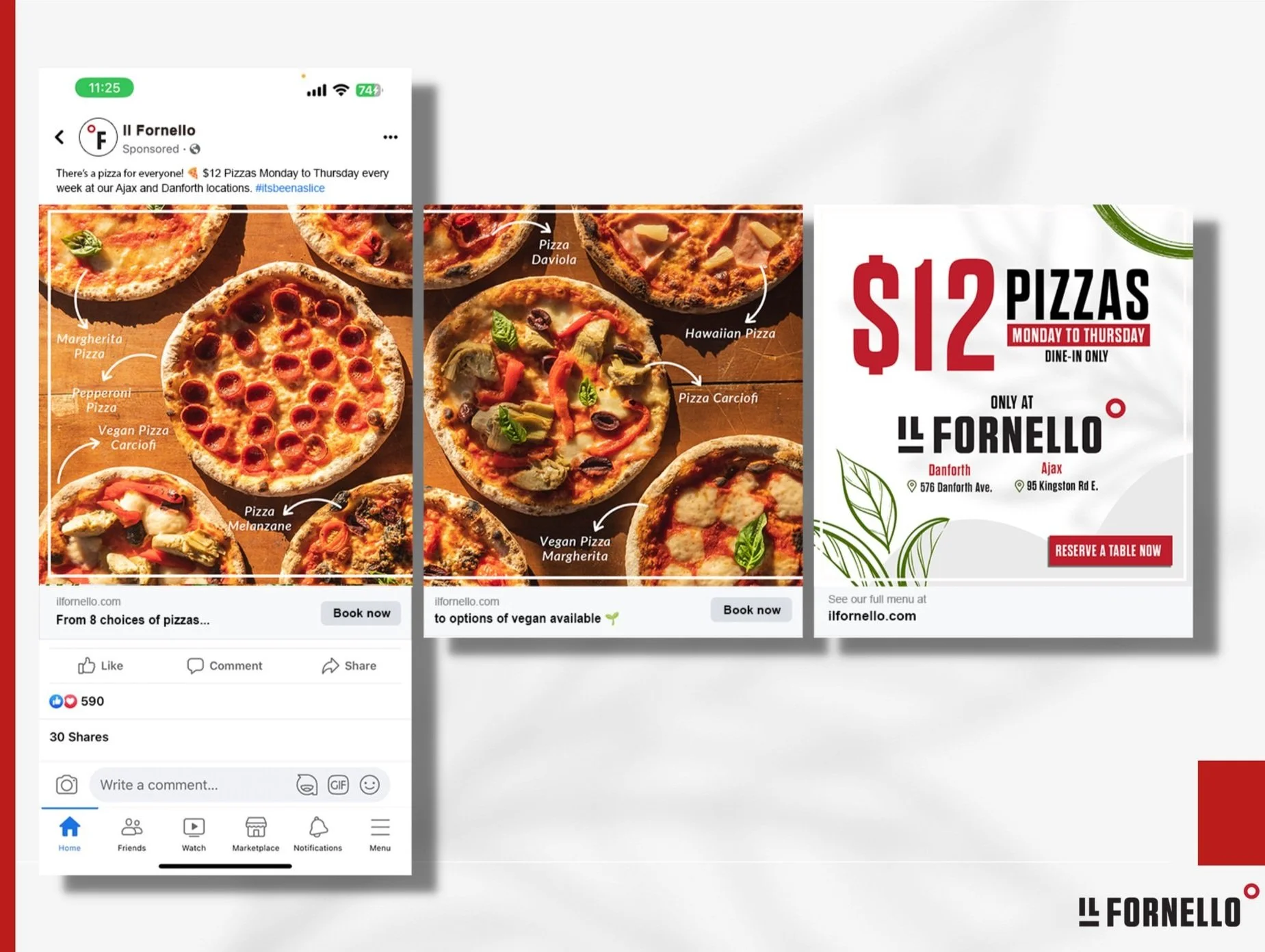 Il Fornello is a casual dining restaurant chain operating in the GTA. During my second year at Humber College, I was fortunate enough to participate in a design competition as a part of my course work. Il Fornello had challenged the design students to come up with an interactive social campaign to promote their $12 pizza deal. The top five groups were invited to pitch their ideas and designs to Il Fornello management.